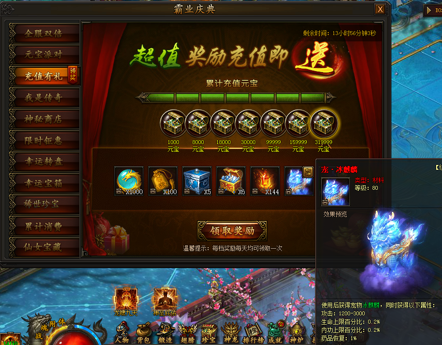 2.3200档可获得3000战力宠物+线下幻神道具!